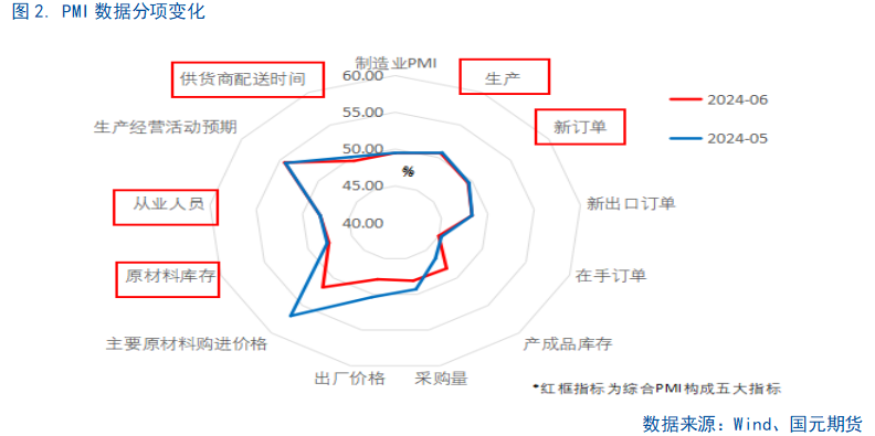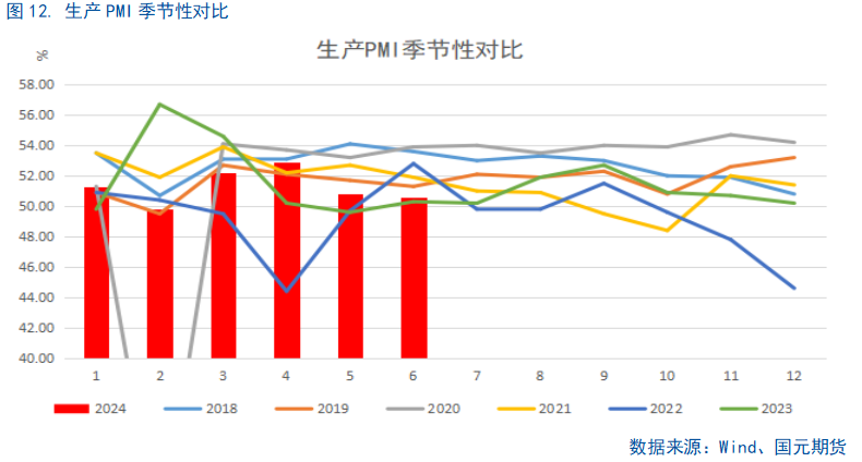 6月的制造业PMI出现持平主要是来自于供需两端的共同回落,但供需缺口有所改善。目前经济的主要支撑主要来自于两方面,外需和新质生产力,出口保持相对韧性,而设备更新等政策对于制造业尤其是高技术和装备制造业的产需存在拉动作用,结构性特征仍存,传统行业如一些基础原材料行业则仍然面临有效需求不足的问题。后续根据一些领先指标来看,伴随着国内财政进度加快,设备更新、地产相关政策的持续推进,7月还有重要会议,产需缺口有望进一步收窄,内需复苏相对缓慢但伴随海外进入补库周期,外需的韧性仍存,下半年PMI有望进一步改善,但仍需警惕内需复苏不急预期的风险。