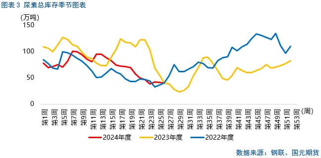 国内尿素厂库及港口库存下滑,低库存的现实对行情有一定支撑,不过目前行情交易的重点偏向于需求端,包括出口及国内的农业需求。截止2024年6月27日,中国尿素企业总库存量25.56万吨,较上周减少1.08万吨,环比减少4.05%。尿素企业库存延续低位波动。近期国内尿素装置故障频发,导致部分尿素企业库存下降;中国尿素港口样本库存量14.5万吨,环比减少0.5万吨,环比跌幅3.33%。本周期主要是烟台港部分货源离港回流,其余港口未见明显变化,整体港口库存量下降。